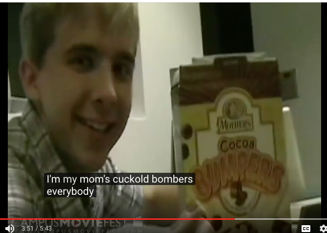 While not totally random, I didn't realize that our movie had made its way to Youtube. I'm downstairs in the kitchen this morning and I turned the sound off because Amanda is still sleeping. I think the movie is better with no audio. I did click on the closed captioning in time to capture this gem.