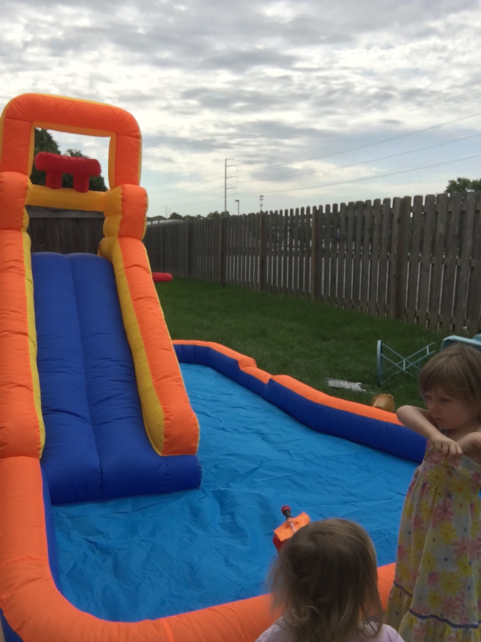 I’m also good with canceling the expensive bounce slides. If we wanna still do water slides in yard, we also have a blow up water slide. Probably smaller than the winters’ (will not hold up to adults—I’ve tried) but perfect for little kids (I’ll look for a link to see what it’s like).